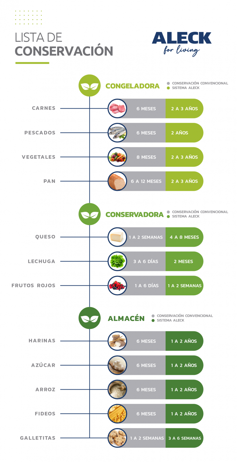 El proceso de envasado al vacío prolonga la vida de los alimentos al eliminar la mayor parte del aire del recipiente cerrado, reduciendo así la oxidación, que afecta a su valor nutricional, sabor y calidad en general. Al eliminar el aire también podemos inhibir la aparición de microbios que causan problemas en determinadas circunstancias. De esta manera no se formará moho, levadura, ni bacterias.